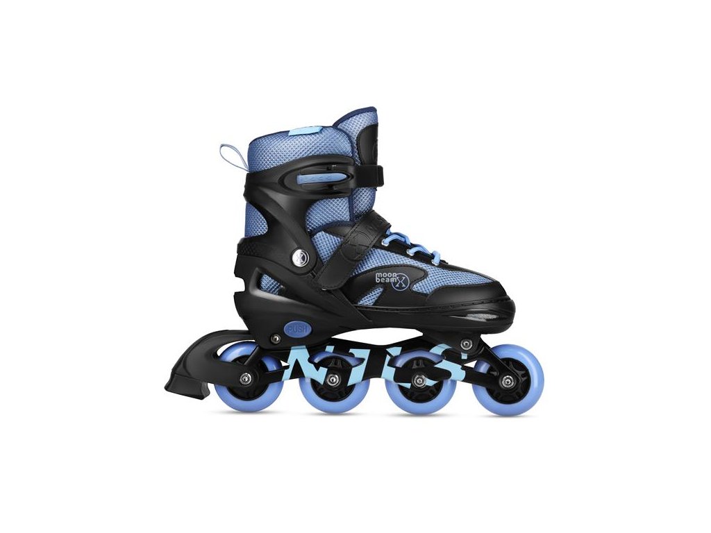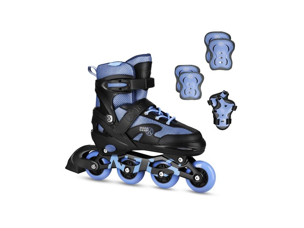 Sada Moonbeam NA0189 je perfektní volbou pro děti a teenagery, kteří s bruslením na kolečkových bruslích teprve začínají. Sada obsahuje kolečkové brusle a sadu chráničů zápěstí, loktů a kolen, díky nimž uživatel získává nejen pohodlí, ale především bezpečnost při učení i každodenním ježdění.