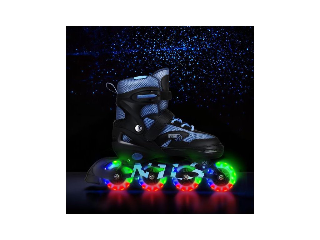 Kolečkové brusle jsou vyrobeny z odolných materiálů: bota je vyrobena z PP a PE a rám je vyroben z hliníku, což zajišťuje dostatečnou stabilitu. PU kolečka jsou vybavena poutavými LED diodami, které se během jízdy rozsvítí – nejenže vypadají atraktivně, ale také zlepšují viditelnost. Ložiska ABEC 7 zajišťují plynulou a tichou jízdu, ideální pro rekreační cestování a učení pokročilejších manévrů.