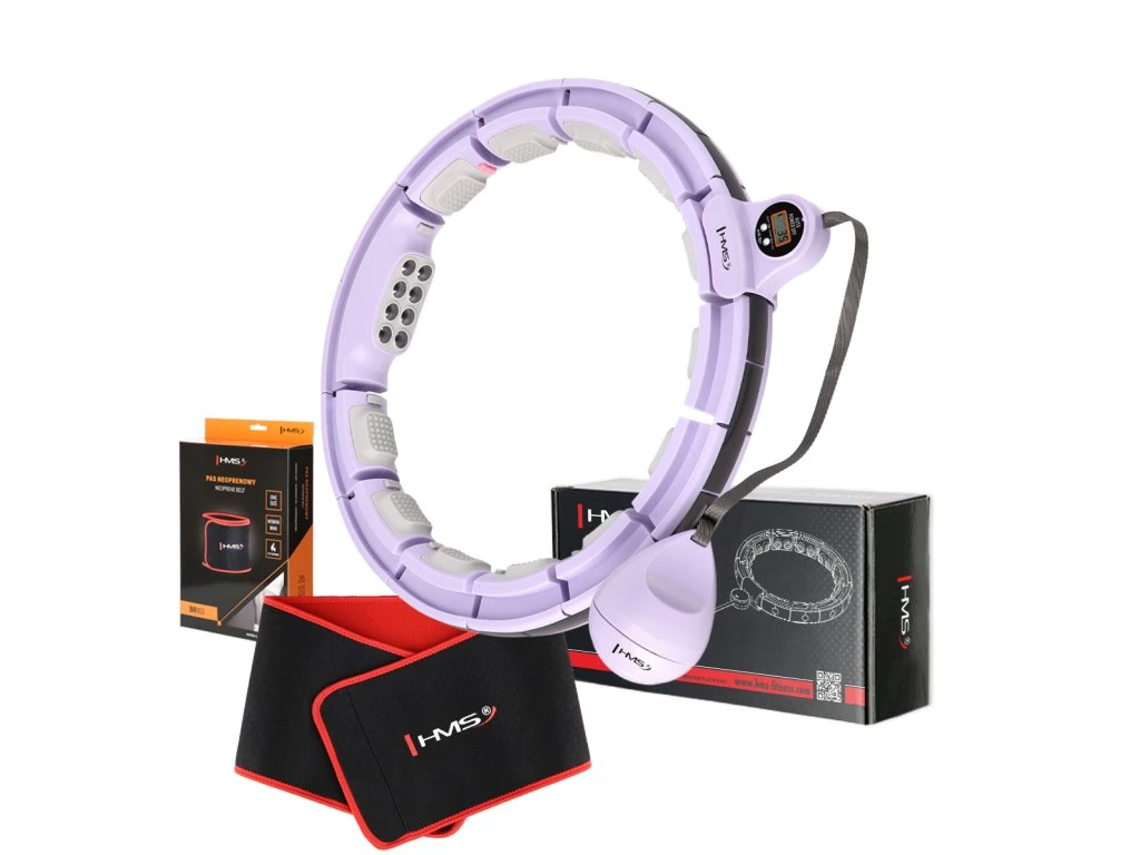 Sada masážní hula hoop HMS HHM13 se závažím, magnety a počítadlem a zeštíhlujícího pásu BR163 fialová