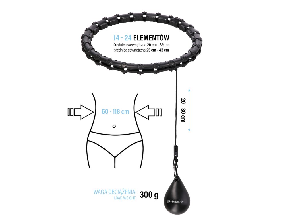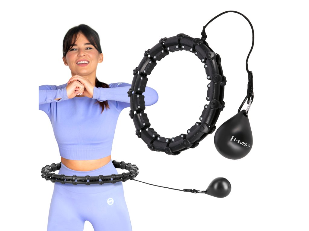 HMS HHW02 je hula hop obruč s nastavitelnou délkou, masážními výstupky a rotujícím závažím.