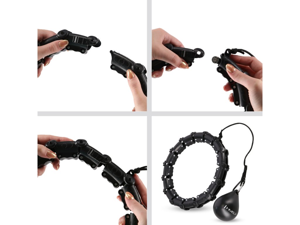 Délka obruče se nastaví podle obvodu pasu tak, aby byla dostatečně volná, ale zároveň aby nepadala přes boky. Po nastavení délky se obruč uzamkne pomocí spojovacího dílu, který je osazen páčkou pro ovládání zámku. Závaží se následně "vrhne" směrem, do kterého budeme kroutit boky a začneme trénink. Obruč HHW02 je z vnitřní strany opatřena masážními ploškami, které příjemně masírují oblast pasu. Intensitu tréninku ovlivňuje délka provázku a rychlost, jakou kroutíme boky.