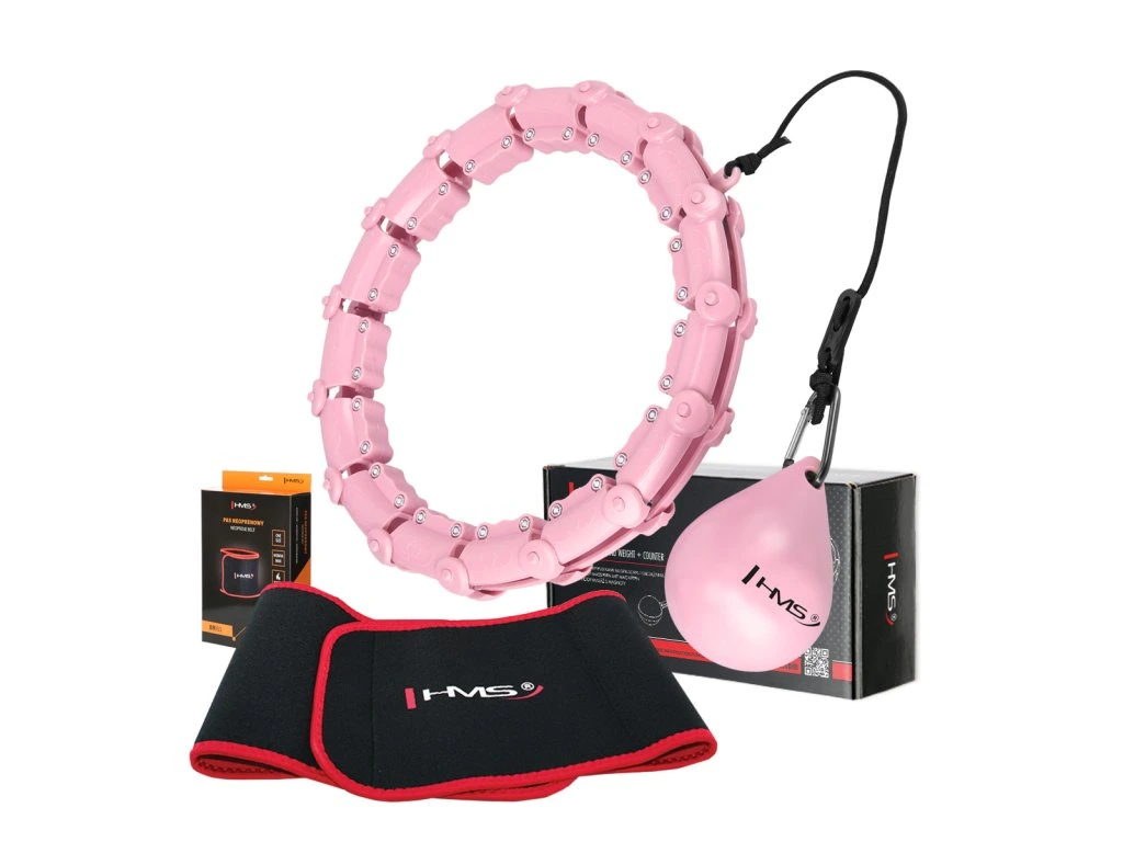 Sada masážní hula hoop HMS HHW02 se závažím a zeštíhlujícího pásu BR163 růžová