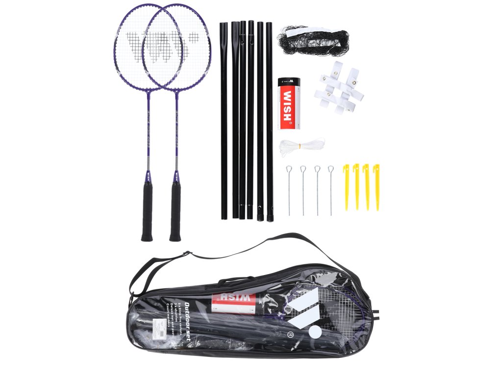 Sada obsahuje 2 rakety, sadu 3 nylonových letek, 2 skládací sloupky, nylonovou síť, kolíky a značkovací pásky, takže uživatel má vše, co potřebuje k zahájení hry. Sada je navíc zabalena v tašce, což výrazně usnadňuje přepravu.