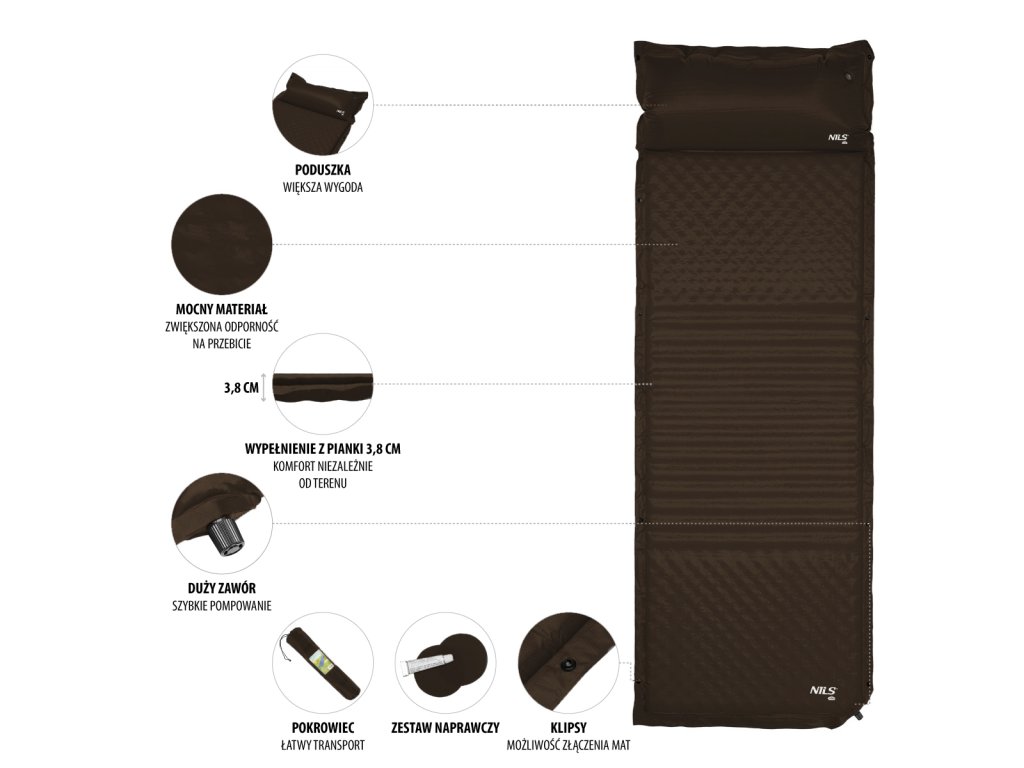 Samonafukovací karimatka NILS Camp NC4001 zajistí kvalitní spánek během kempování a dovolených pod stanem. Podložka je ale vhodná i k vodě a všude tam, kde si chcete příjemně poležet.