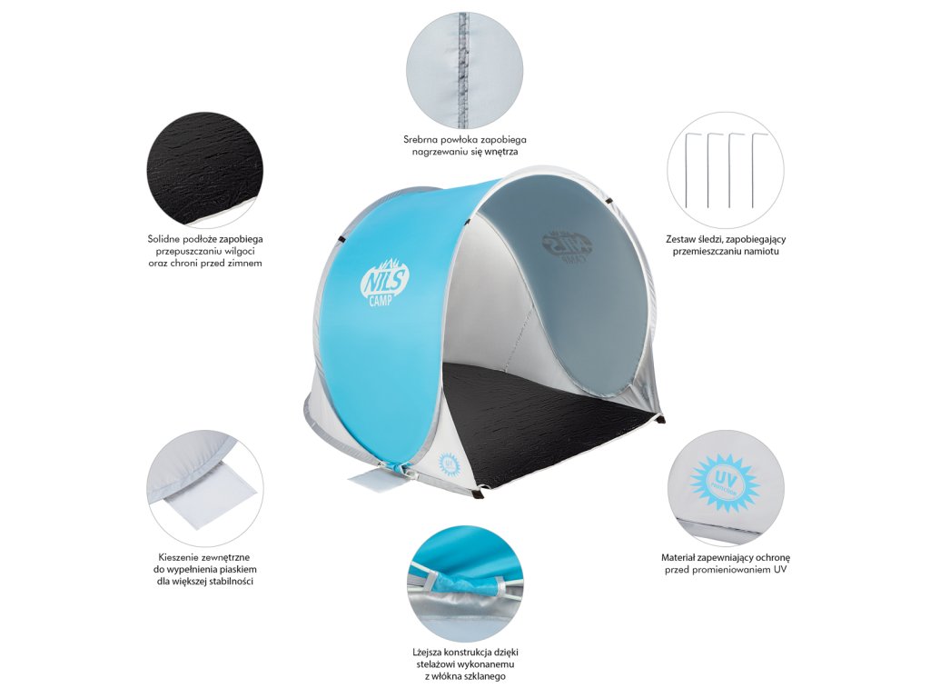 Samorozkládací plážový stan NILS Camp NC3173 modro-šedý