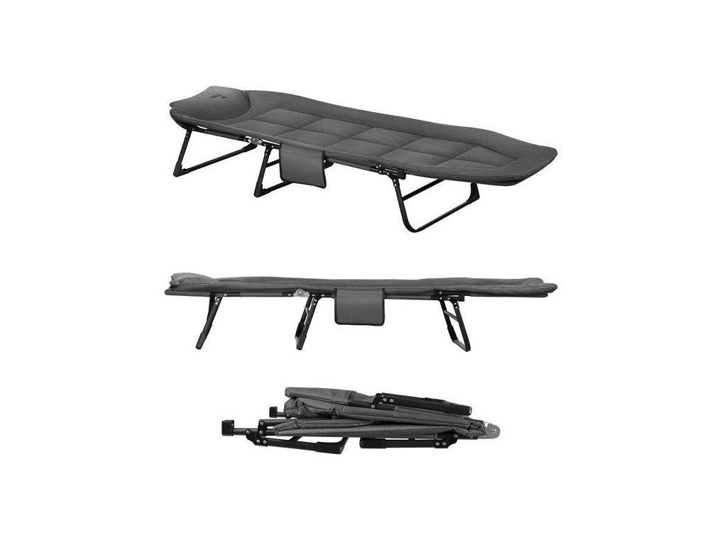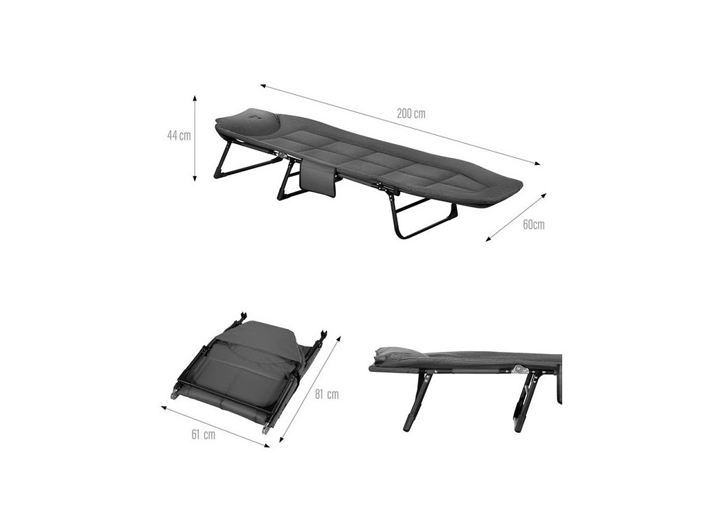 Postel se navíc velmi snadno skládá a přepravuje - ve složeném stavu zabírá velmi málo místa (81 × 61 x 15 cm) a váží pouhých 5 kg. Díky tomu se snadno vejde do zavazadlového prostoru auta a rozloží se během několika sekund. Přídavná kapsa umožňuje uložit nezbytné věci, jako je telefon, svítilna nebo kniha, což je praktické zejména v polních podmínkách.