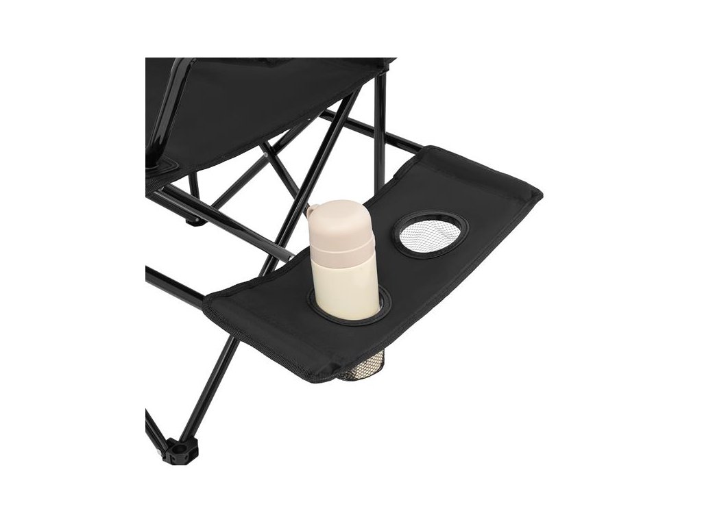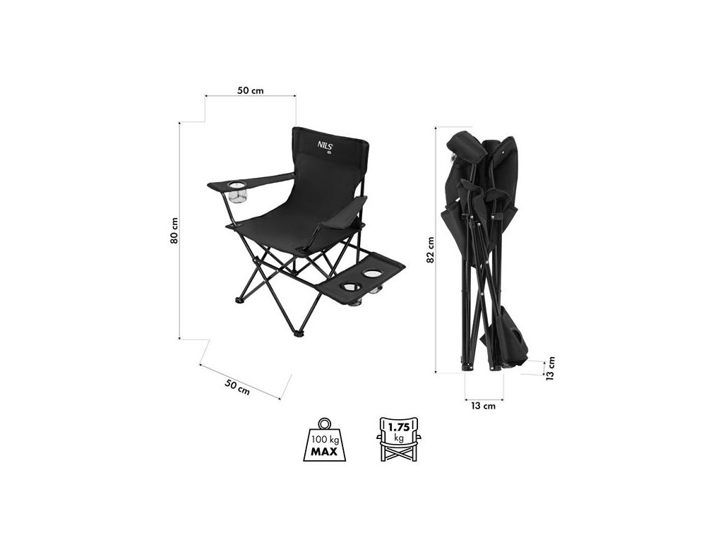 NILS Camp NC3301 je turistická židle doplněná o boční držák nápojů. Její konstrukce zajišťují komfortní odpočinek bez ohledu na místo – ať už jde o dovolenou v kempu, piknik v parku a nebo posezení s přáteli na zahradě. Sedák a opěradlo jsou vyrobeny z odolného polyesteru 600D s PE zátěrem, odolného proti oděru a vlhkosti. Černý lem zajišťuje čistý vzhled a celou židli drží stabilní ocelový rám s černým práškovým lakem.