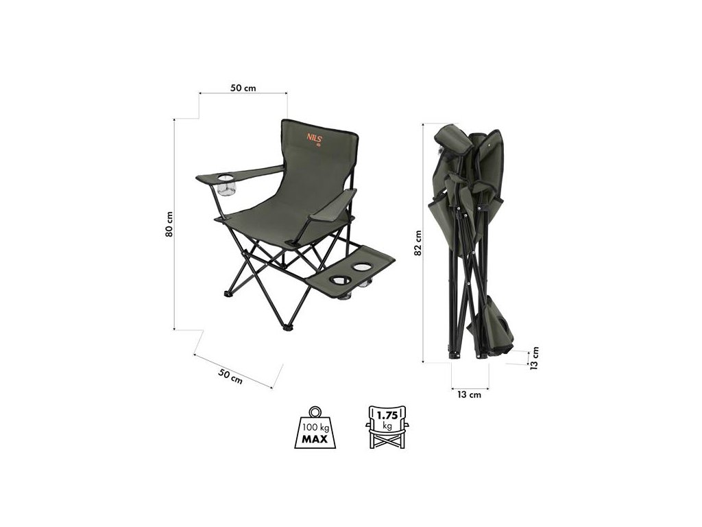 Židle je výjimečně lehká – váží pouhých 1,75 kg a lze ji složit do rozměru 13 × 13 × 82 cm, což usnadňuje její přenášení a skladování. Součástí balení je praktický vak s uchem, takže si jí můžete vzít všude s sebou. Ocelový rám z profilů 16 x 0,7 mm zajišťuje nosnost až 100 kg.