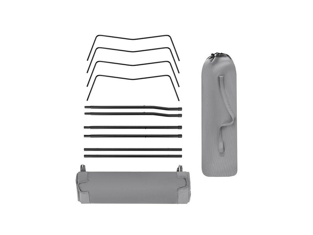 Potah postele je vyroben z odolného polyesteru v úpravě 600D Oxford, který je známý svou odolností proti oděru, roztažení a vlhkosti. Tento materiál zaručuje nejen dlouhou životnost, ale také pohodlí – je dostatečně napnutý a prodyšný, takže se uživatel cítí pohodlně i během teplých letních nocí.