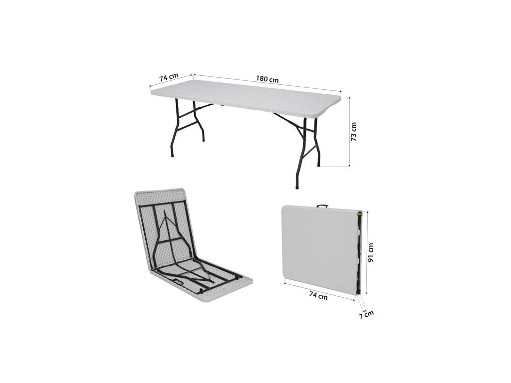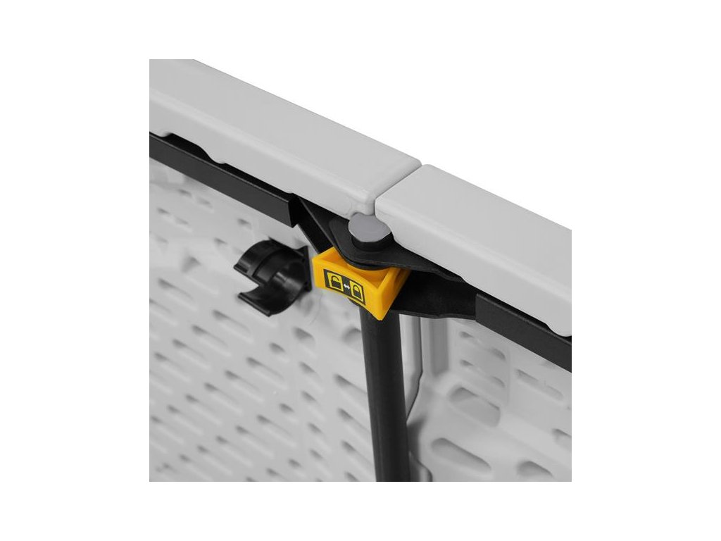 Jednou z hlavních předností modelu NC1618 je jeho robustní a promyšlená konstrukce. Horní deska je vyrobena z odolného PVC s hladkým povrchem, který nejen dobře vypadá, ale je také odolný proti skvrnám, snadno se čistí a odolává povětrnostním vlivům. Zesílený ocelový rám zajišťuje stabilitu stolu i při větším zatížení. Maximální nosnost až 150 kg umožňuje stůl bezpečně používat při servírování jídla, ukládání nádobí nebo rozestavování vybavení na akcích.