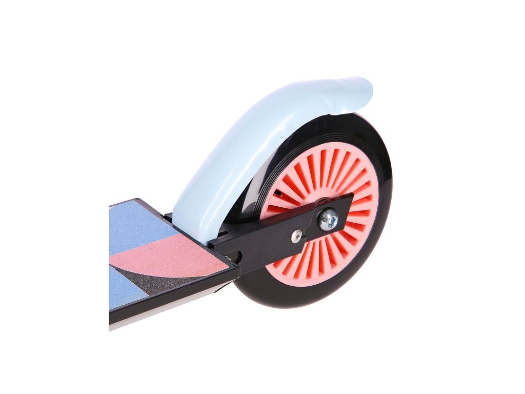 Koloběžka má na zadním kole nášlapnou brzdu pro bezpečnou jízdu a rychlé zastavení koloběžky.