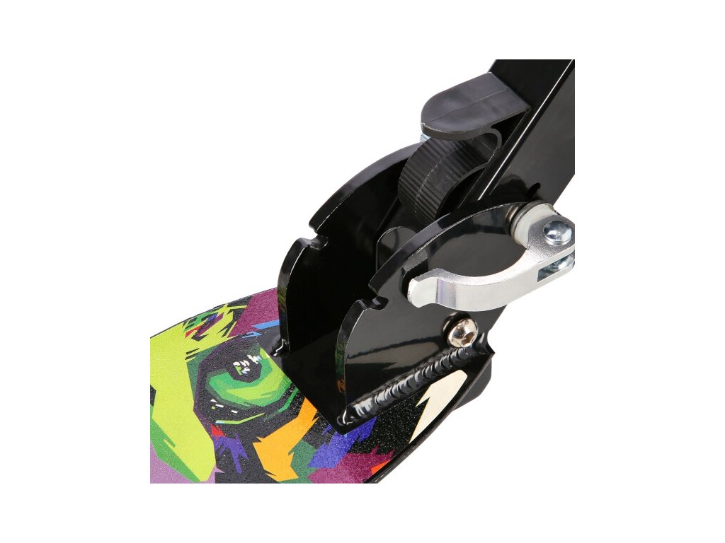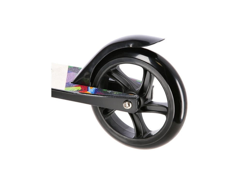 Koloběžka má na zadním kole nášlapnou brzdu pro bezpečnou jízdu a rychlé zastavení koloběžky.
