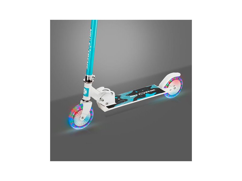 Skládací koloběžka NILS Extreme HD505 je určená především dětem. Hlavní předností tohoto modelu jsou polyuretanová kolečka o průměru 120 milimetrů, které zaručují pohodlnou jízdu. Koloběžku lze složit, takže při uskladnění nezabírá mnoho místa a zároveň si ji můžete brát téměř kamkoliv sebou ať už jedete na výlet například vlakem a nebo pokud jedete autem na dovolenou do zahraničí. Dalšími výraznými prvky jsou protiskluzová nášlapná plocha, madla z pěnového materiálu a zadní přítlačná brzda. Klademe důraz především na atraktivní vzhled a kvalitní provedení, díky kterému máte jistotu, že kupujete kvalitní koloběžku jenž potěší a zároveň i ochrání. Chcete-li pro bezpečnost udělat maximum, nezapomeňte se porozhlédnout po přilbě a chráničích.