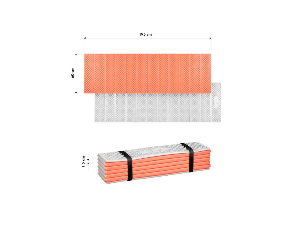 Podložka má délku až 195 cm, což umožňuje pohodlný odpočinek i pro vyšší osoby. Šířka 60 cm a tloušťka 1,5 cm zajišťují pohodlnou oporu a izolaci od podkladu, a to i na nerovném terénu.