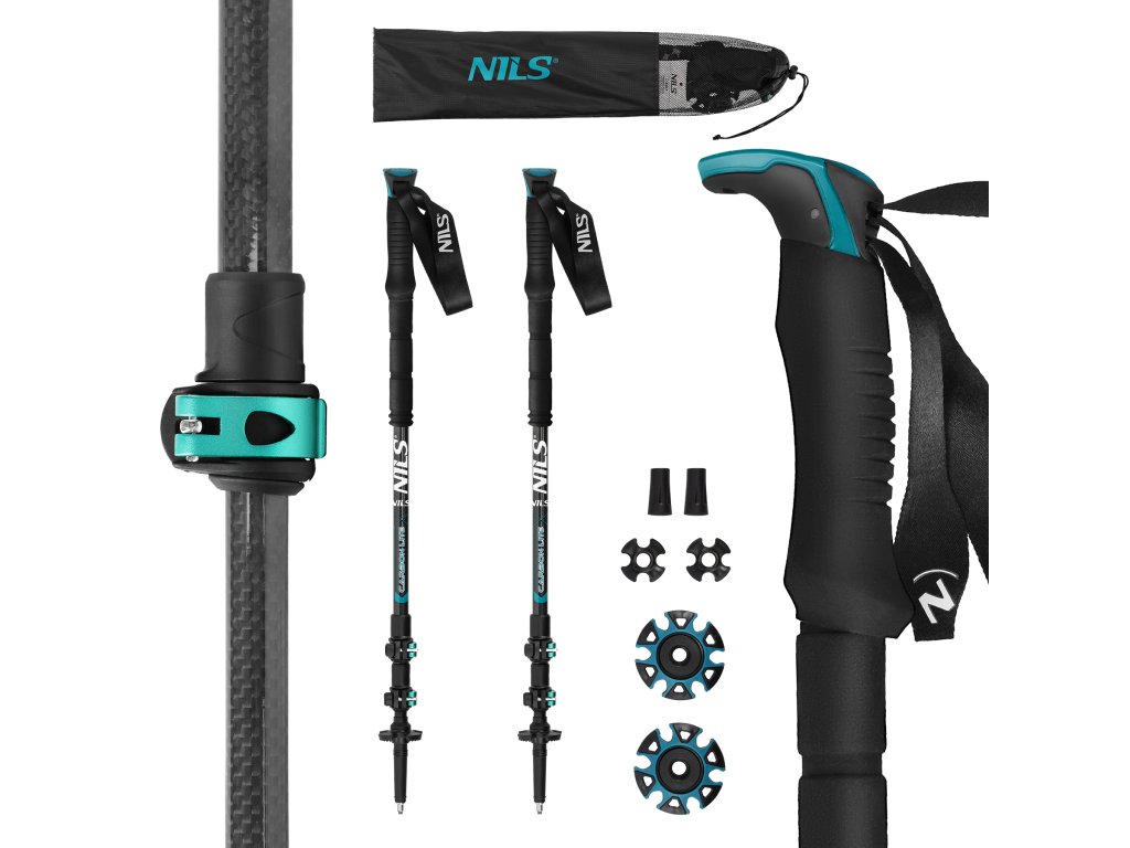 - Systém svorek: rychlé a bezpečné nastavení délky pro plnou stabilitu holí.