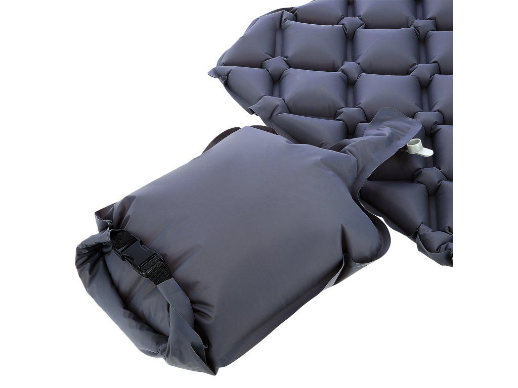 Ve složeném stavu zabírá podložka velmi málo místa a její skládání je velmi jednoduché. Stačí odšroubovat ventil a karimatku srolovat od horního okraje. Nemusíte se bát, že se sama rozbalí, protože má popruh, který podložku po srolování zajistí. V sadě je navíc praktické pouzdro, do kterého můžeme karimatku zabalit. Usnadní vám přepravu a navíc chrání podložku před poškozením. Díky své velikosti a hmotnosti jen 0,68 kg ji můžete mít snadno u sebe na každé cestě.