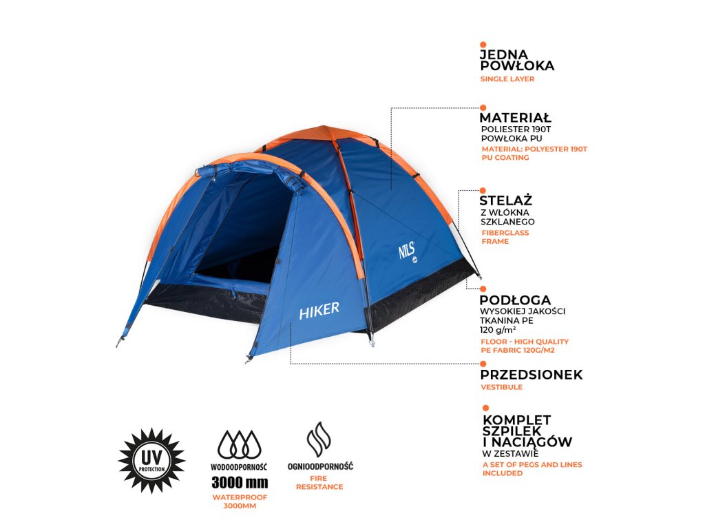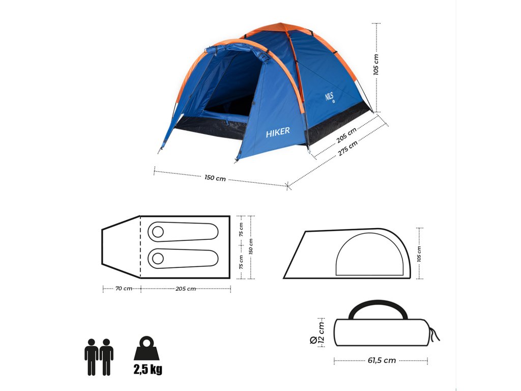 Stan NILS Camp NC6010 Hiker je ideální volbou pro každého, kdo si cení aktivní dovolené v kempu, nebo v přírodě. Model Hiker je kompaktní a lehký jednoplášťový stan, který nabízí prostor pro dvě osoby a zajistí pohodlí i v náročnějších povětrnostních podmínkách. Předsíňka je ideální pro uložení bot, batohů a dalšího turistického vybavení.