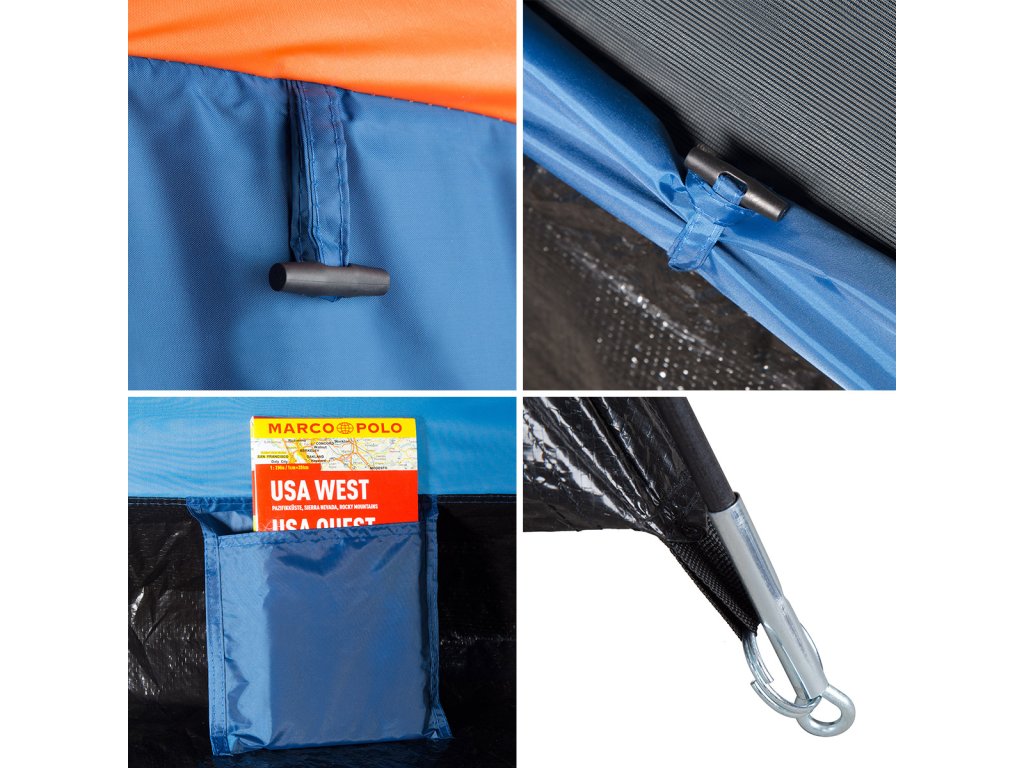 Dvě praktické kapsy uvnitř ložnice umožňují pohodlné uložení drobných předmětů. Uprostřed ložnice se pak nachází háček pro zavěšení svítilny.