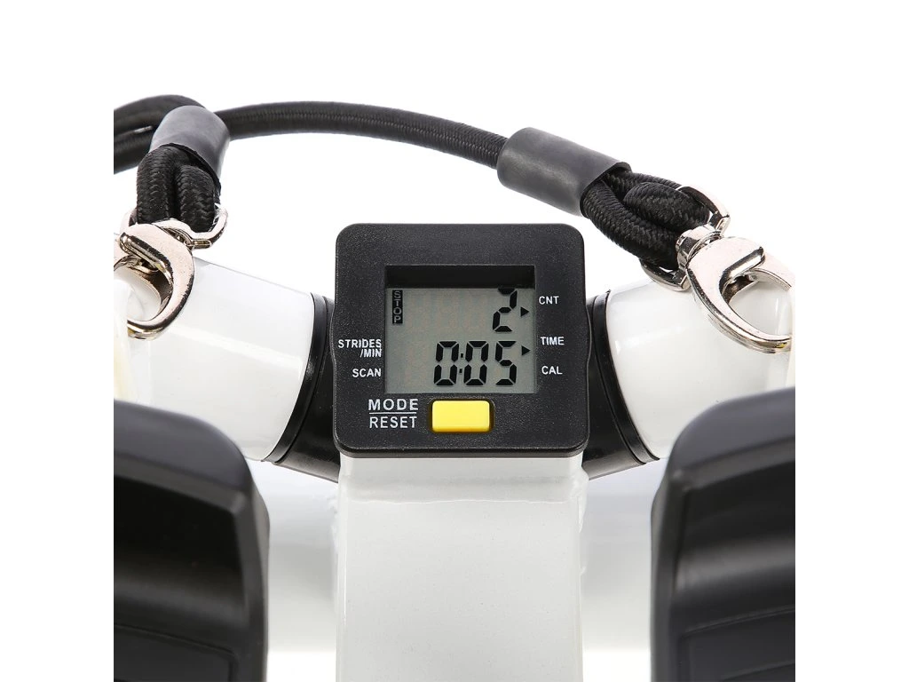 Stepper je vybaven multifunkčním počítačem s LCD displejem, který zobrazuje veškeré údaje o tréninku (čas tréninku, počet kroků za minutu, celkový počet kroků a počet spálených kalorií). Jednotka je napájena knoflíkovou baterií LR44, kterou lze snadno vyměnit.